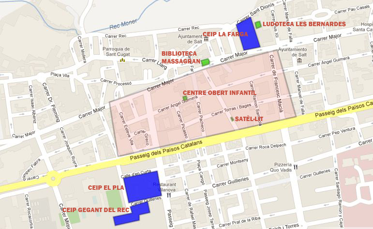Així doncs, l’Ajuntament de Salt genera ofertes de lleure educatiu i d’esport per a infants i adolescents en horari no lectiu en patis i places, el Consorci de Benestar Social Gironès–Salt realitza una detecció i atenció precoç de situacions de risc en infants i joves associades a l’espai públic i el Projecte d’Intervenció Comunitària Intercultural posa en marxa activitats veïnals amb la participació d’infants i famílies per a la millora de la convivència.