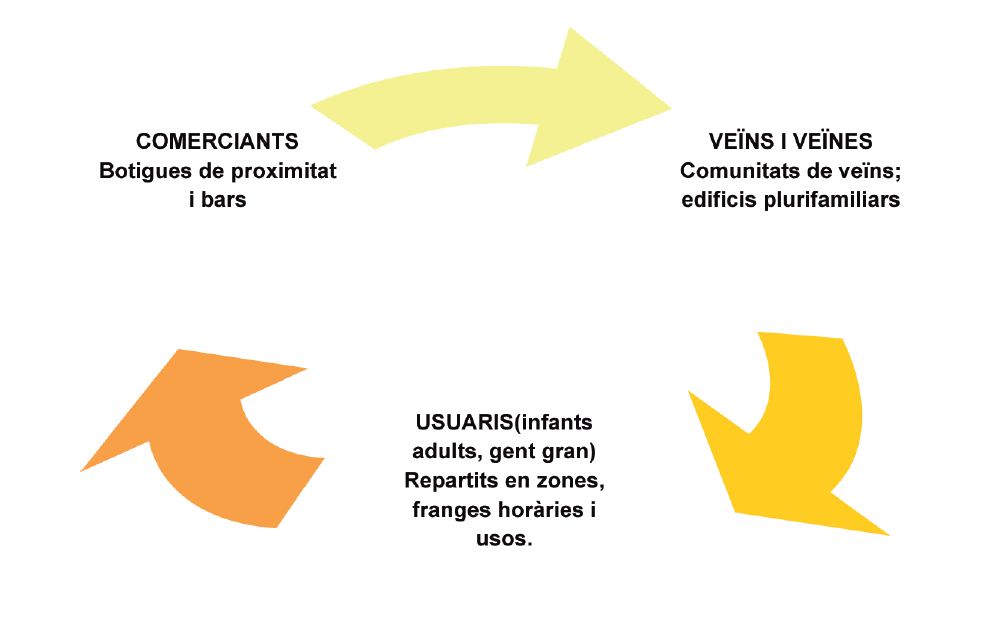 • Tres actors amb necessitats i interessos diferenciats: comerciants, veïns i usuaris/vianants.